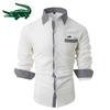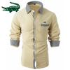 2024 Новая мужская рубашка из хлопка и льна в клетку в стиле пэчворк, мужская повседневная рубашка с длинными рукавами и вышивкой