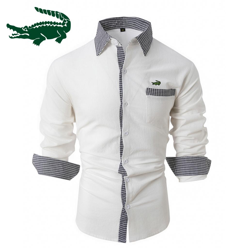 2024 Новая мужская рубашка из хлопка и льна в клетку в стиле пэчворк, мужская повседневная рубашка с длинными рукавами и вышивкой — купить товар онлайн с бесплатной доставкой до всему миру!