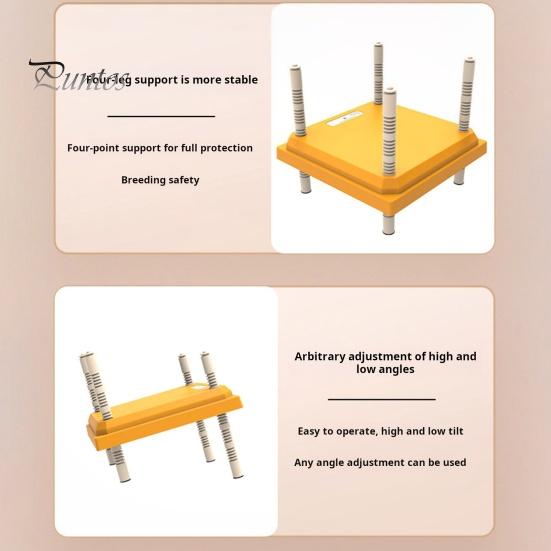 Внешняя оболочка изготовлена из огнестойкого материала для снижения риска ожогов и имеет две меры безопасности для дополнительной защиты.. Уникальная конструкция ножек с пряжкой позволяет регулировать высоту и угол наклона для размещения цыплят разного размера.