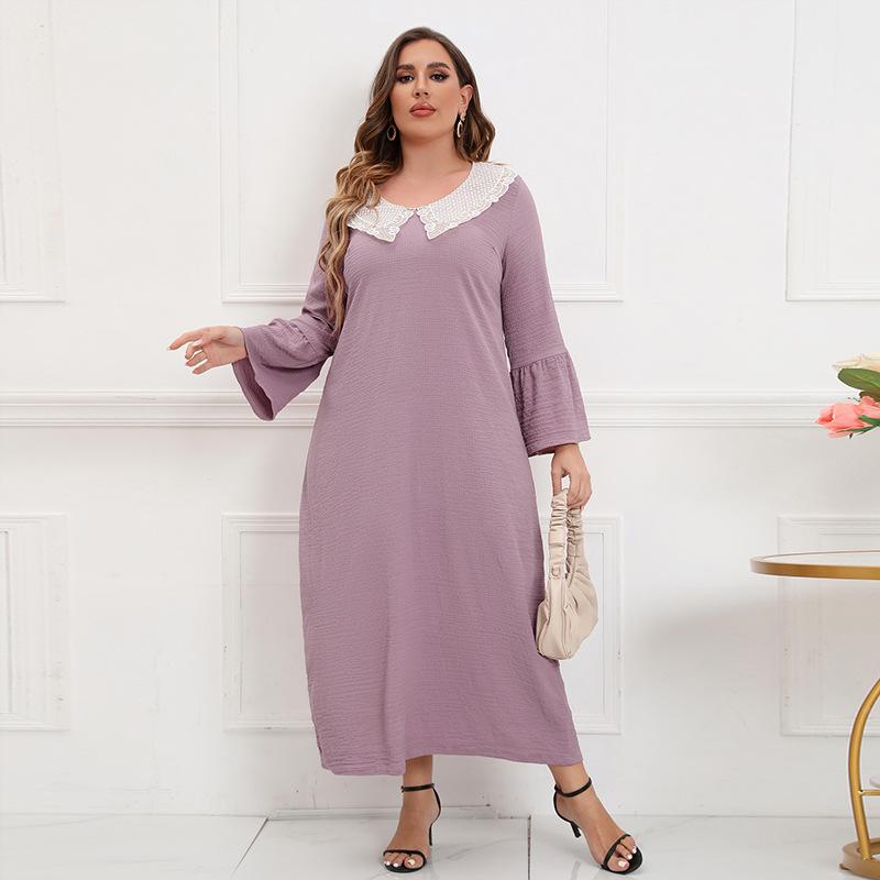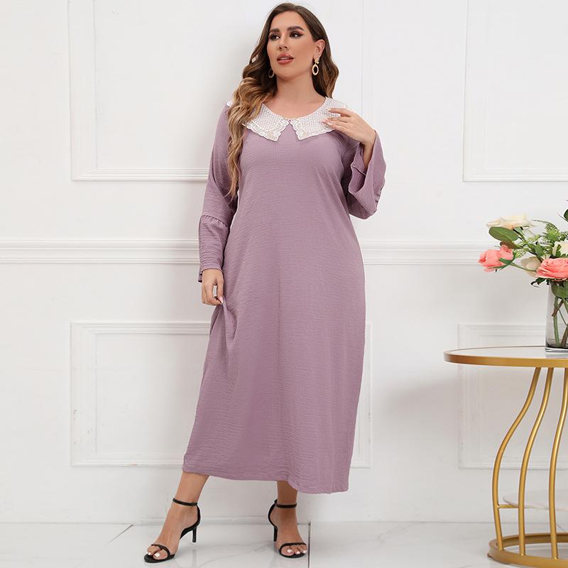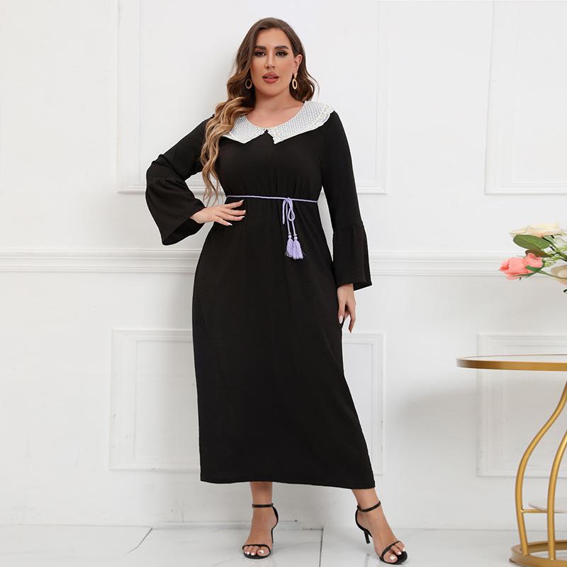 Весенне-осеннее женское платье размера плюс, кружевное платье с вышивкой, однотонное блестящее длинное платье