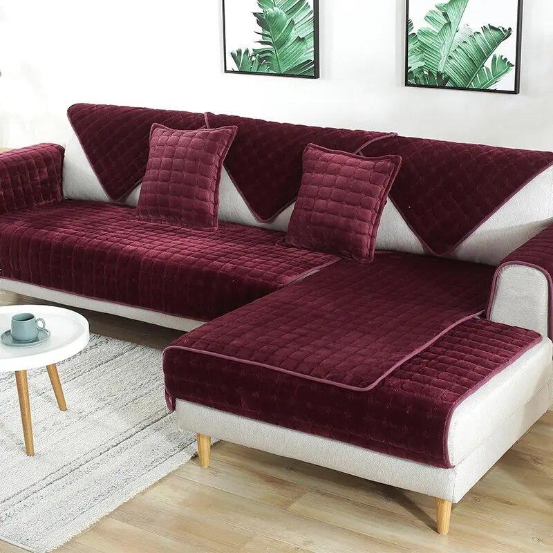 Утолщенная бархатная подушка для дивана, универсальная плюшевая Нескользящая крышка для дивана для гостиной, теплая фланелевая спинка дивана, полотенце, наволочка