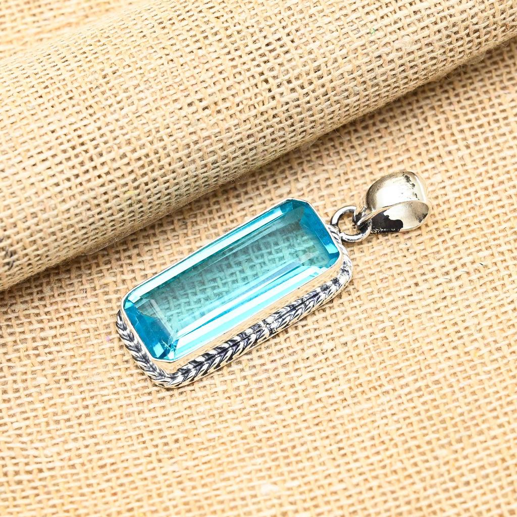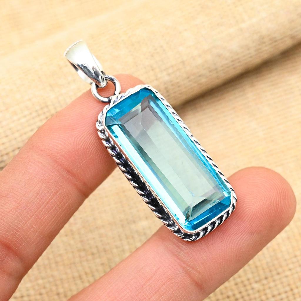 Ювелирный кулон ручной работы из стерлингового серебра 925 пробы с синим топазом и драгоценным камнем для женщин