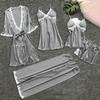 Женский комплект из 5 предметов, сексуальное нижнее белье с подвязками, халаты, кружевное боди, нижнее белье с глубоким V-образным вырезом