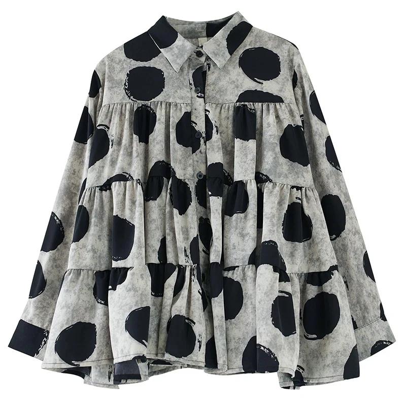 Xitao Рубашка в горошек со свободными складками и принтом, повседневный однобортный женский топ DMJ3770 — купить товар онлайн с бесплатной доставкой до всему миру!