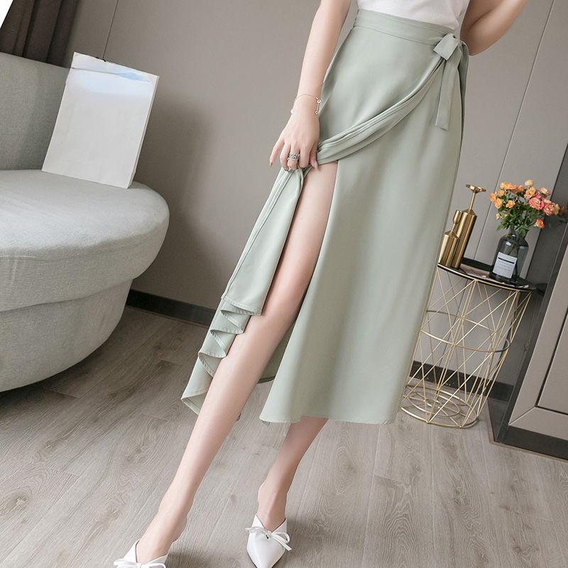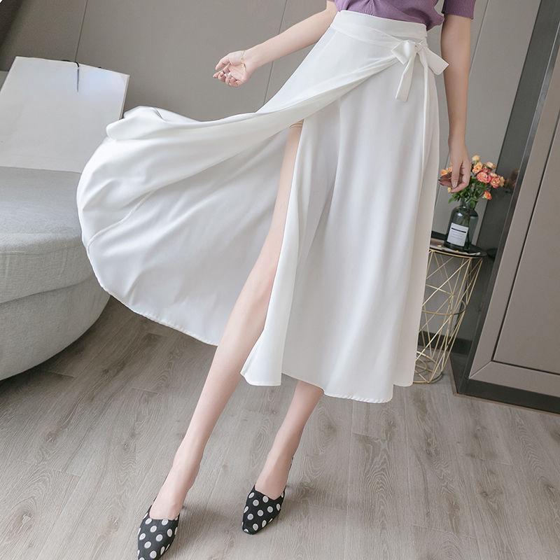 Женская плиссированная юбка, шифоновая цельная ретро-юбка на шнуровке, летняя розовая женская пляжная юбка в корейском стиле с разрезом