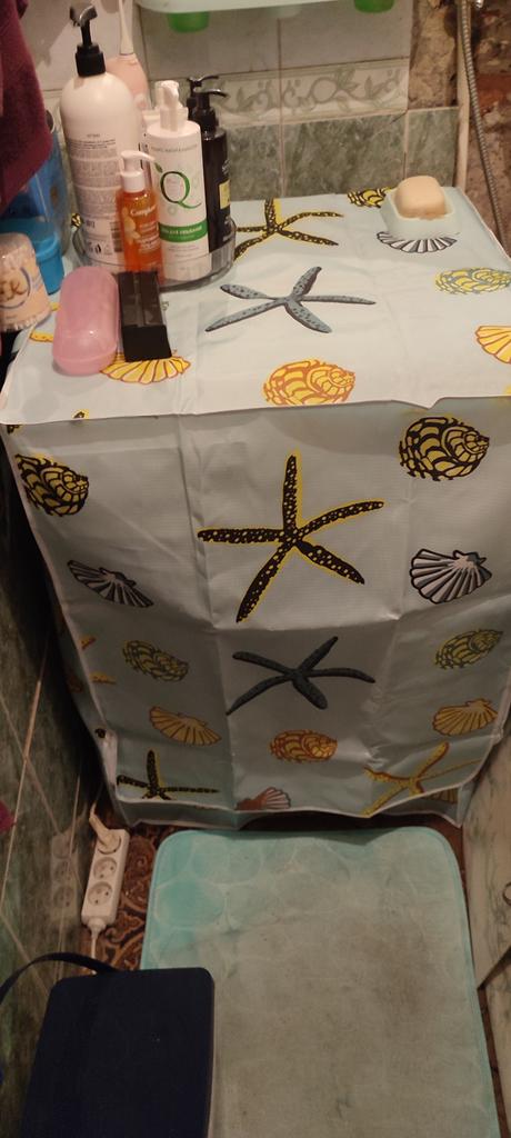 Водонепроницаемый чехол для стиральной машины идёт в разных расцветках я выбрала расцветку цвета морской волны с принтом ракушек он хорошо сочетается в моей ванной с зелёной плиткой и зеркалом в оправе цвета морской волны чехол подошёл на мою машину рассчитана на загрузку 5 кг я довольна
