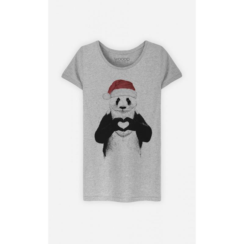 Женская футболка - САНТА ПАНДА — купить товар онлайн с бесплатной доставкой до всему миру!