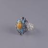Дизайнерское оригинальное ремесло, инкрустированное эмалью, фарфор, лотос, натуральный халцедон, регулируемое кольцо, этнические классические женские украшения