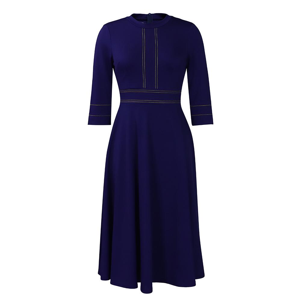 Весенне-летнее женское платье больших размеров с воротником-стойкой, модное вечернее платье с подолом, платья с рукавом три четверти