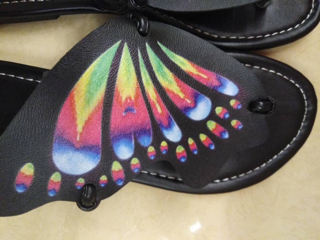 Нога болтается, нет фиксации. Так очень красивые. Чё-то надо думать🤔 чтоб ногу зафиксировать. Один шлёпок с небольшим дефектом, на крылышке. На фото видно. Фиксацию ноги не придумала🥺 Единственно, приклеить всю стопу на клей, чтоб не болталась.🤣