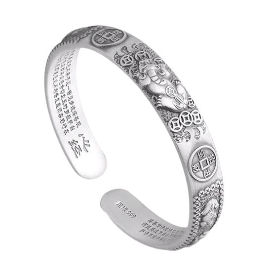 Мужской браслет Pixiu Ретро Регулируемая мантра Lucky Fengshui Декор Богатство Счастье Защита монеты Декор Rilievo Браслет с открытием