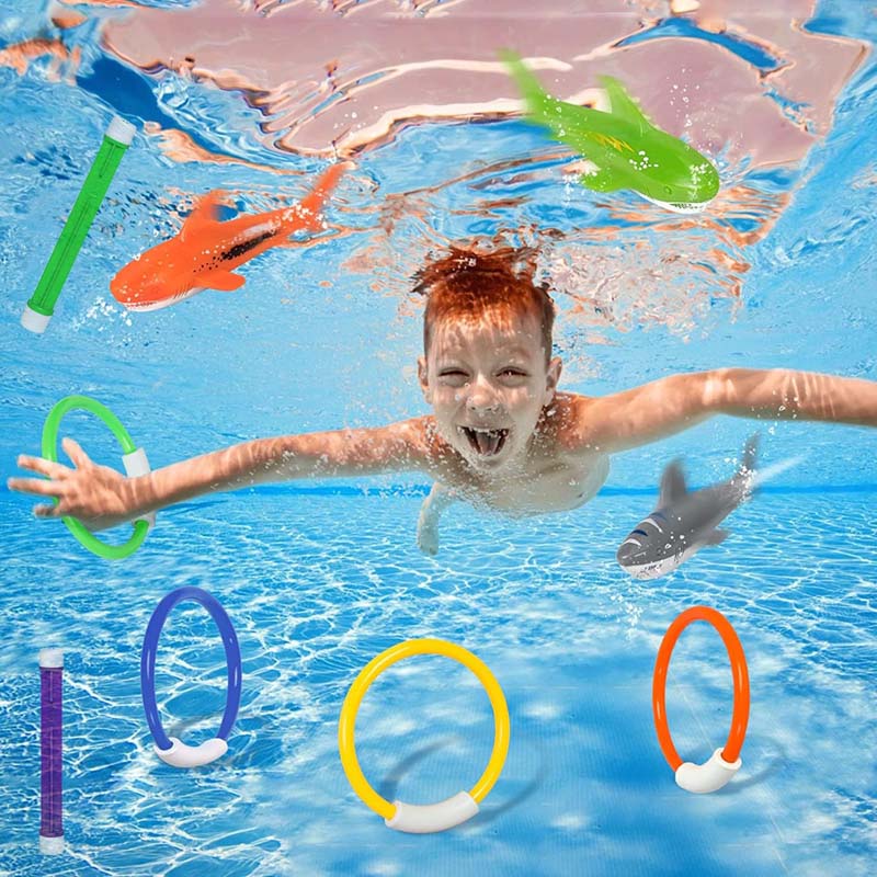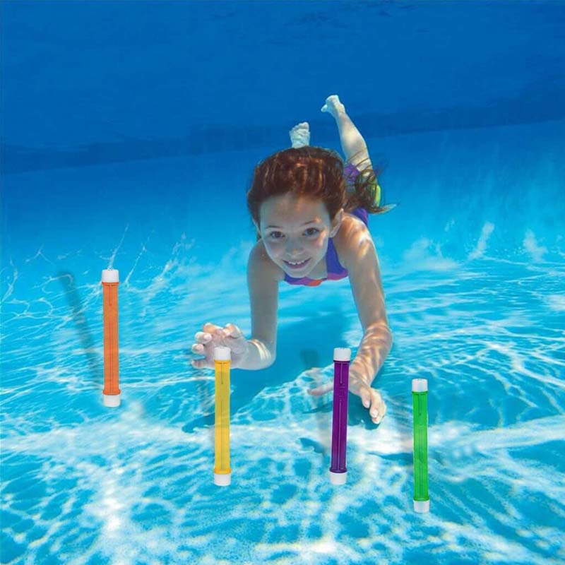 Наши игрушки для дайвинга в бассейне легко опускаются на дно, но имеют вес, поэтому стоят на дне бассейна вертикально, а яркие цвета позволяют легко видеть их в бассейне, что позволяет детям легко схватить их во время ныряния.
