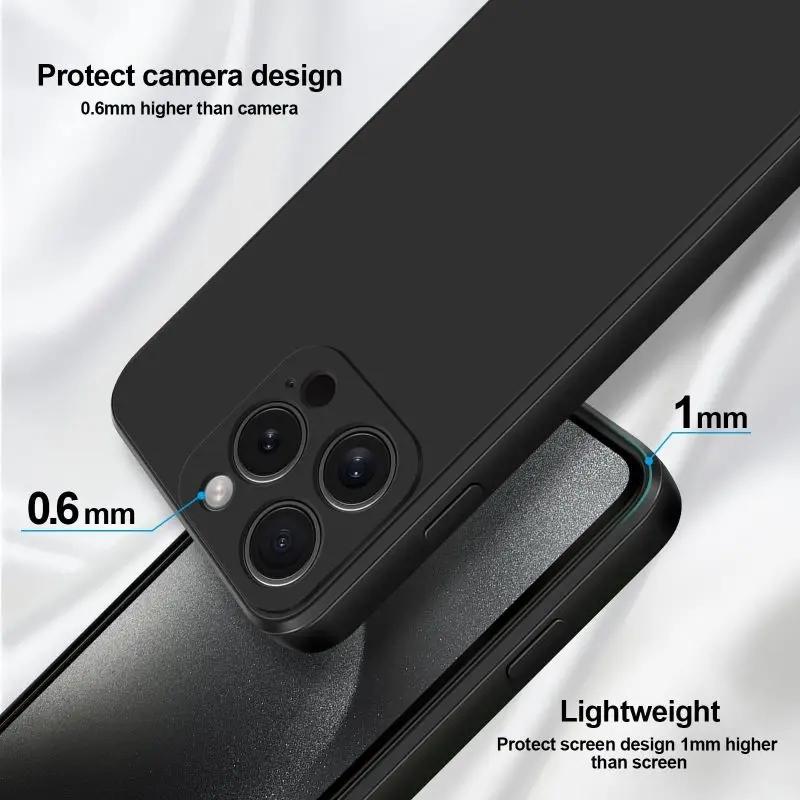 Матовый квадратный мягкий жидкий силиконовый чехол для телефона iPhone 15 14 13 12 11 Pro Max X XR XS Max 7 8 15 Plus, защитный чехол для объектива камеры