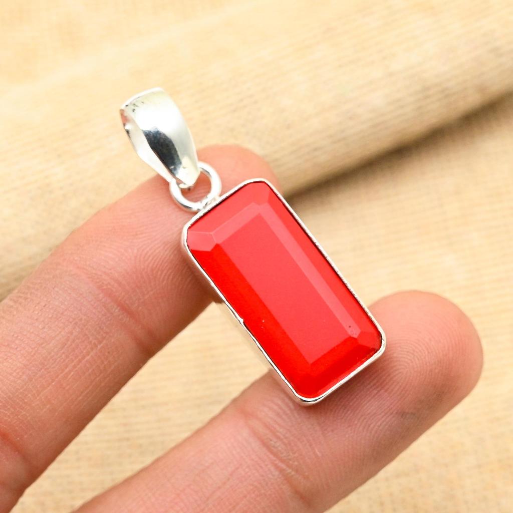 Ограненный красный коралловый драгоценный камень ручной работы из стерлингового серебра 925 пробы, ювелирный кулон Foe Her