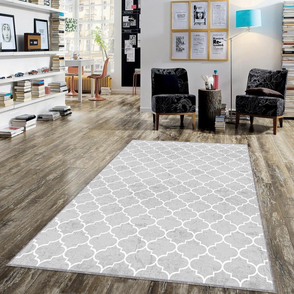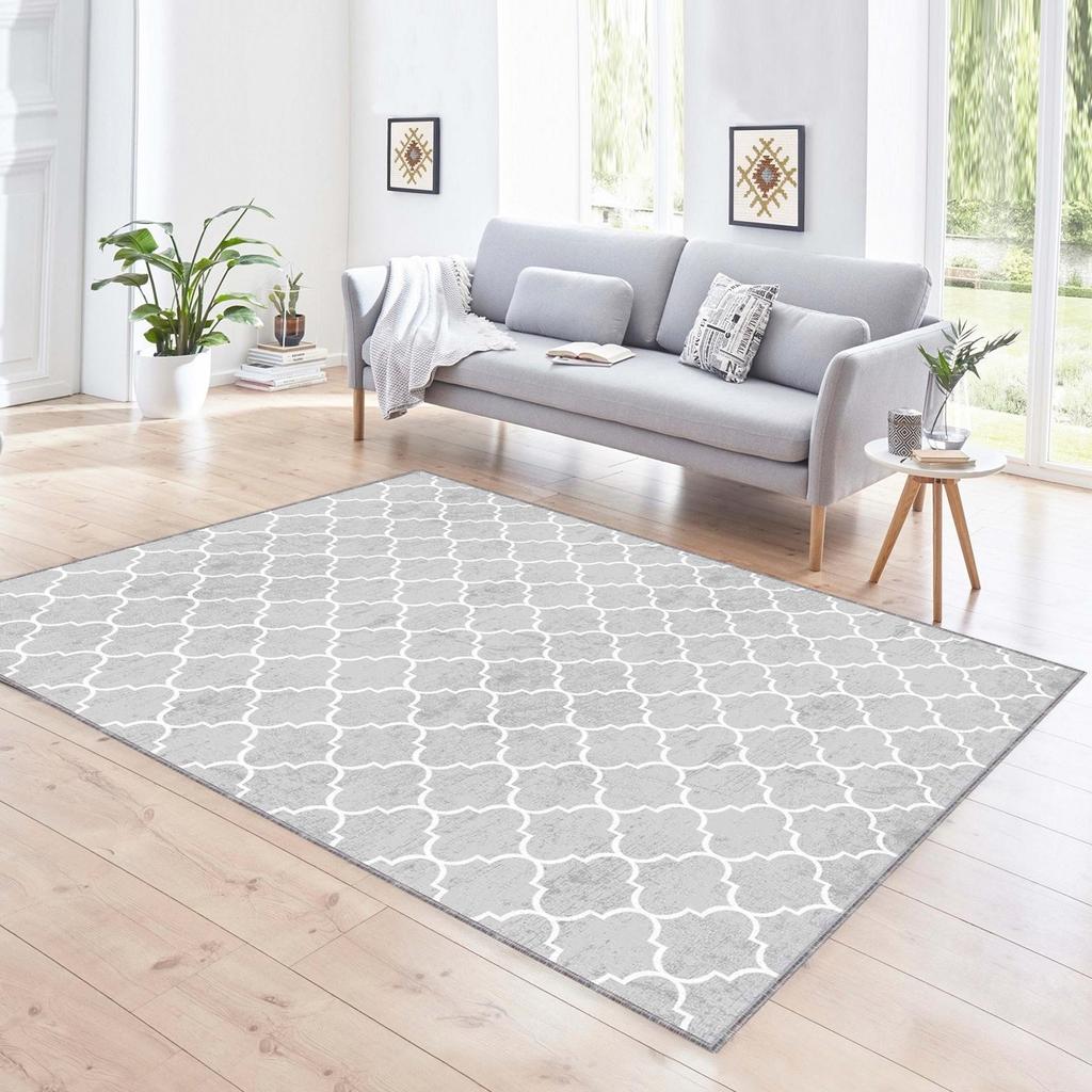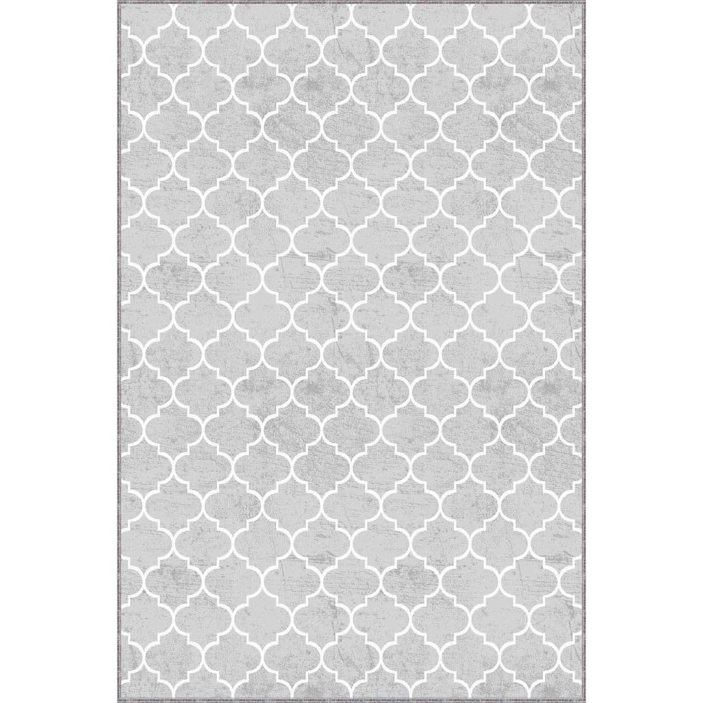 Серый коврик с марокканским узором — прямоугольный и мягкий ковер, пригодный для машинной стирки