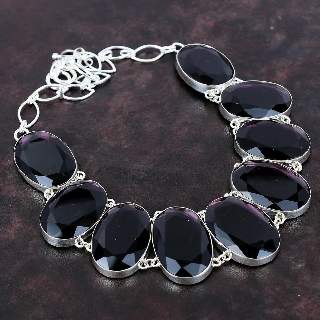 Ожерелье с граненым африканским аметистом, ожерелье из стерлингового серебра 925 пробы, регулируемое ожерелье-цепочка, ювелирные изделия из драгоценных камней, подарок на годовщину, ожерелье ручной работы