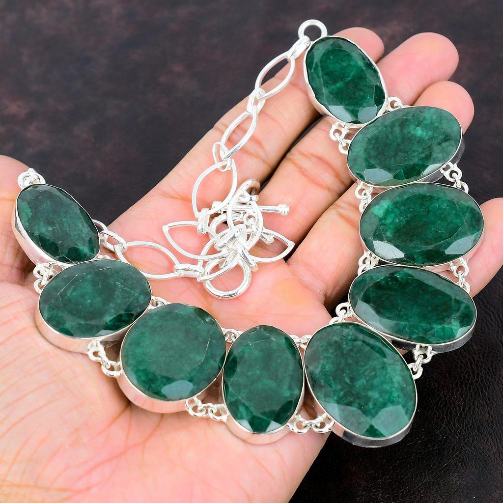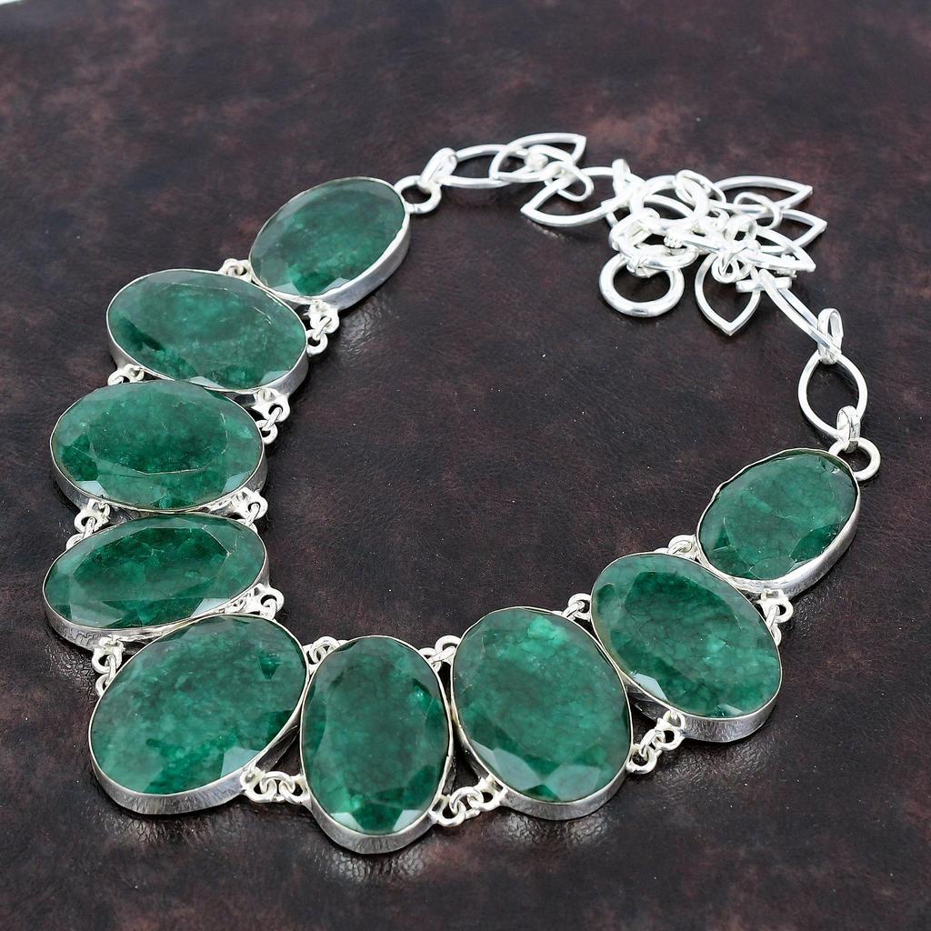 Ожерелье с граненым замбийским изумрудом, ожерелье из стерлингового серебра 925 пробы, регулируемое ожерелье-цепочка, новинка, ювелирные изделия из драгоценных камней, ювелирные изделия ручной работы для подарка
