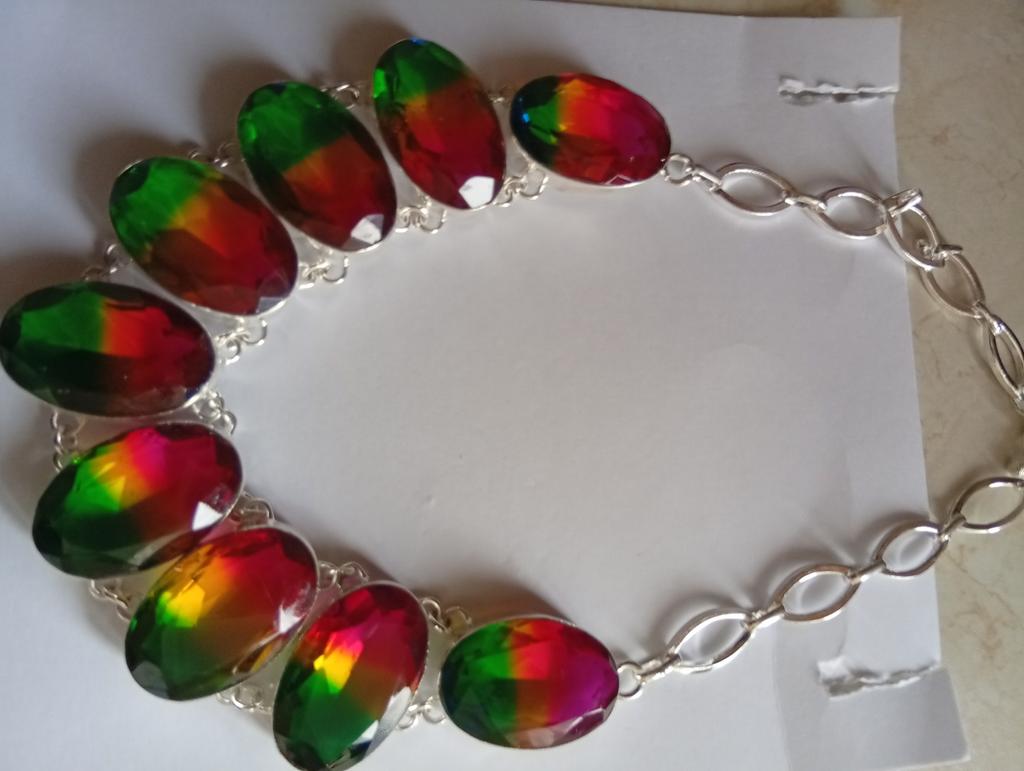 Красивое колье, но менее яркое, чем я ожидала, на фото больше цветов. Спасибо! Внимание, мой любимый продавец! Я покупаю у Вас еще серьги и кулон такой турмалин. Я хочу, чтобы присутствовали все три цвета, как на уже присланном Вами колье! подберите все комплектом, чтобы можно было носить все вместе!! Обнимаю!! Татьяна из Москвы. Attention, my favorite seller! I'm also buying earrings and a tourmaline pendant from you. I want all three colors, like the necklace you already sent! Please match them together so we can wear them all together! Hugs! Tatyana from Moscow.