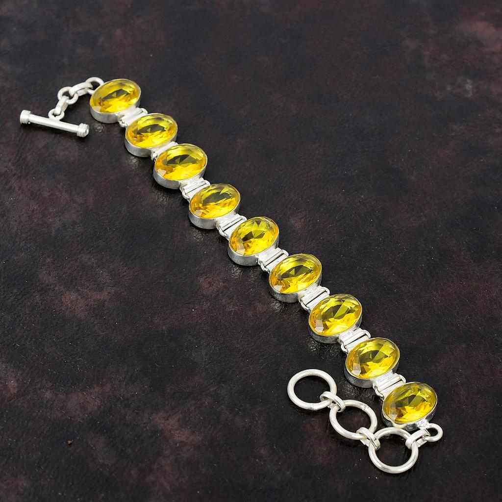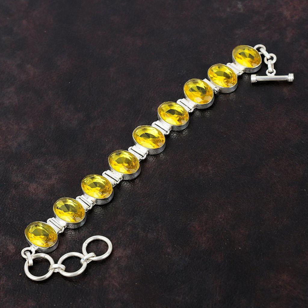 Браслет с граненым цитрином Браслет из натурального драгоценного камня Браслет из стерлингового серебра 925 пробы Регулируемый браслет-цепочка Ювелирные изделия ручной работы Подарок на свадьбу