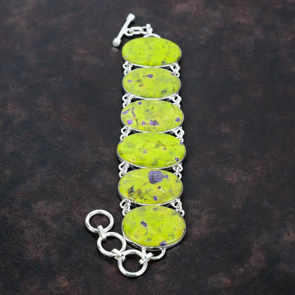 Браслет из драгоценного камня Стихтит Стильные украшения Браслет из стерлингового серебра 925 пробы Регулируемый браслет-цепочка Браслет из камня ручной работы Подарок для него