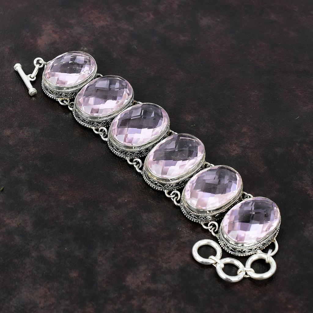Браслет из ограненного розового кунцита из стерлингового серебра 925 пробы, ювелирные изделия ручной работы, регулируемый браслет-цепочка, винтажный браслет, подарок для него