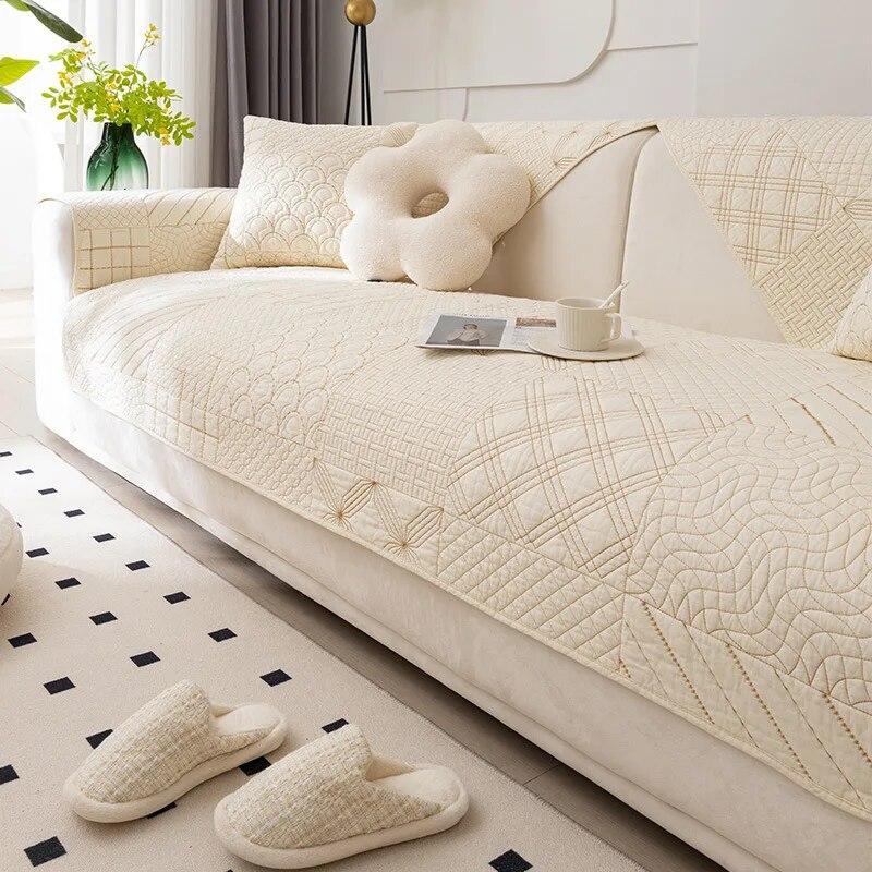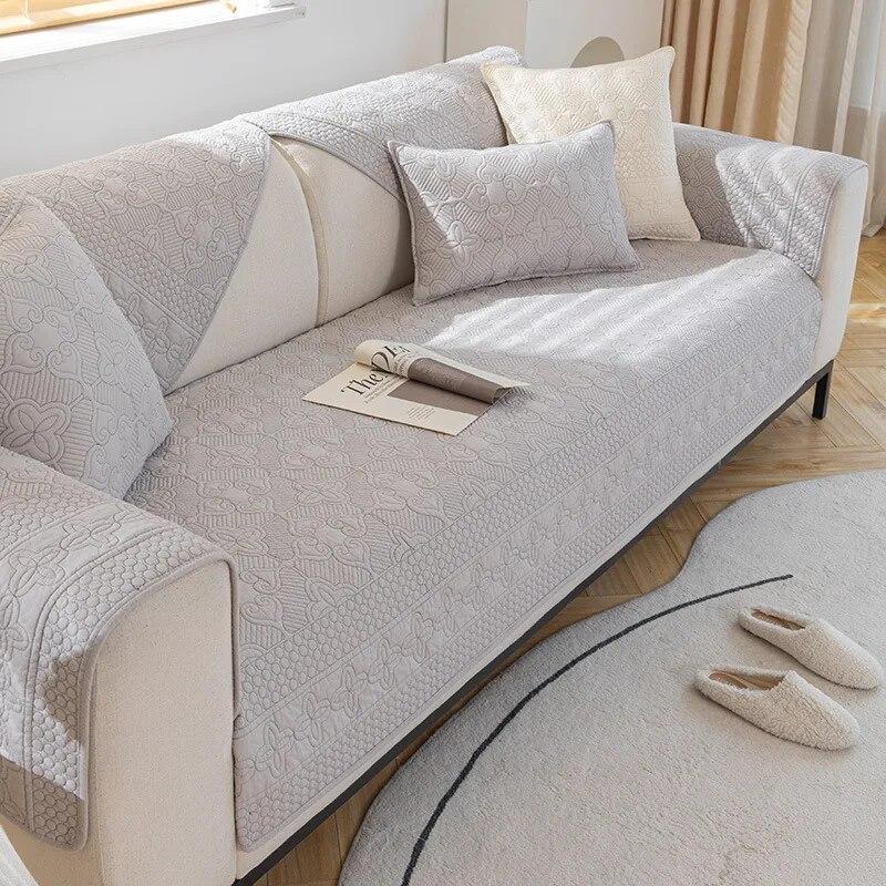 Размер диванных чехлов, которые вы выберете, должен быть на 20 ~ 30 см больше, чем фактический размер дивана. Остаточную часть можно повесить вниз, чтобы защитить боковую часть дивана или заправить под диван, чтобы предотвратить скольжение.