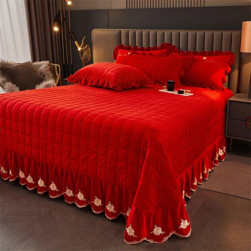 Плотное бархатное покрывало и наволочка, двойное покрывало Queen King, стеганая мягкая простыня, юбка с рюшами и вышивкой