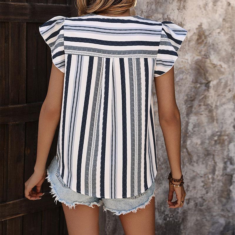 YYFS Женские модные повседневные летние весенние блузки и рубашки с v-образным вырезом и короткими рукавами в полоску с принтом