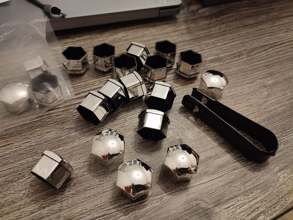 Свой заказ получил быстро. Колпачки серебряные, красивые. Попробовал сделать замену, подошли. Скоро поменяю старые колпачки на эти новые.