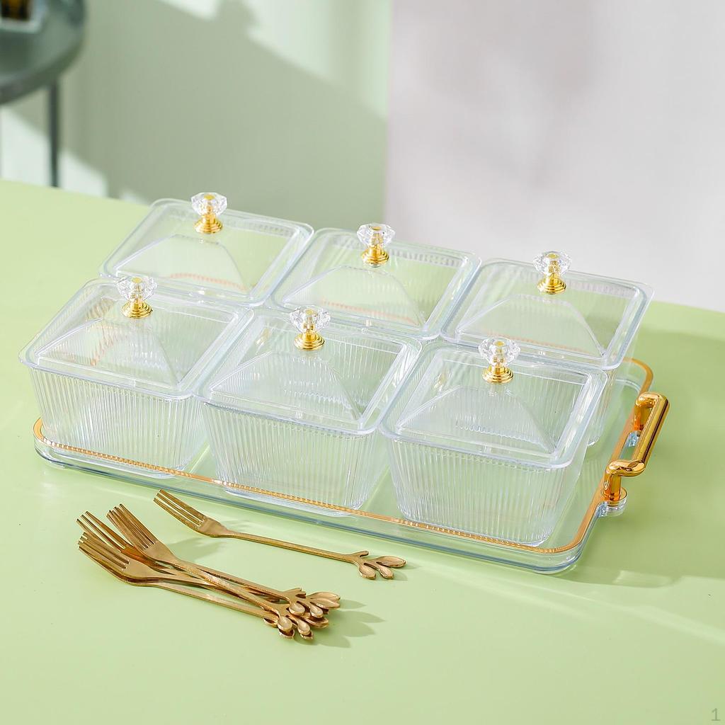 Разделенные сервировочные блюда, 6 отделений, пылезащитные, с крышкой, роскошная тарелка для закусок, орехов и конфет