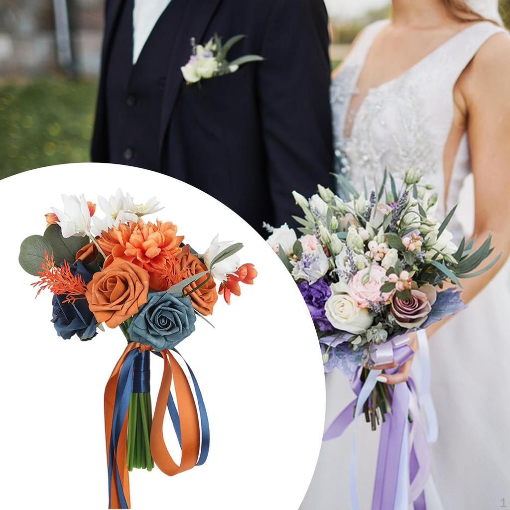 - 【Декоративный букет】Свадебный букет не выцветает, не требует длительного ухода, может быть непосредственно вставлен в вазу, это очень хорошее украшение для дома.