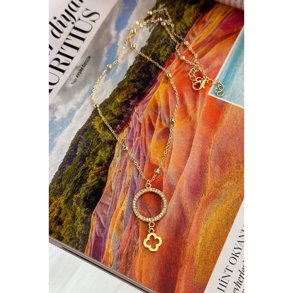 Элегантное ожерелье с цирконовым камнем в форме круга, фигурка клевера