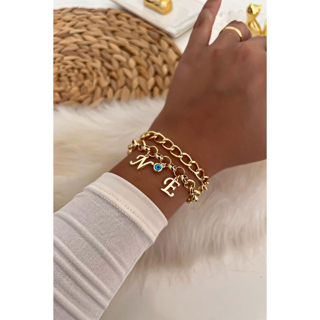 Комбинация браслета-цепочки с золотыми буквами на выбор, 22 детализированной цепочки от сглаза