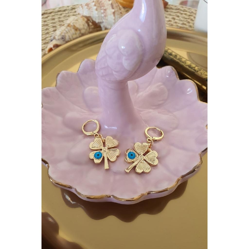 Серьги-подвески с детализацией клевера от сглаза