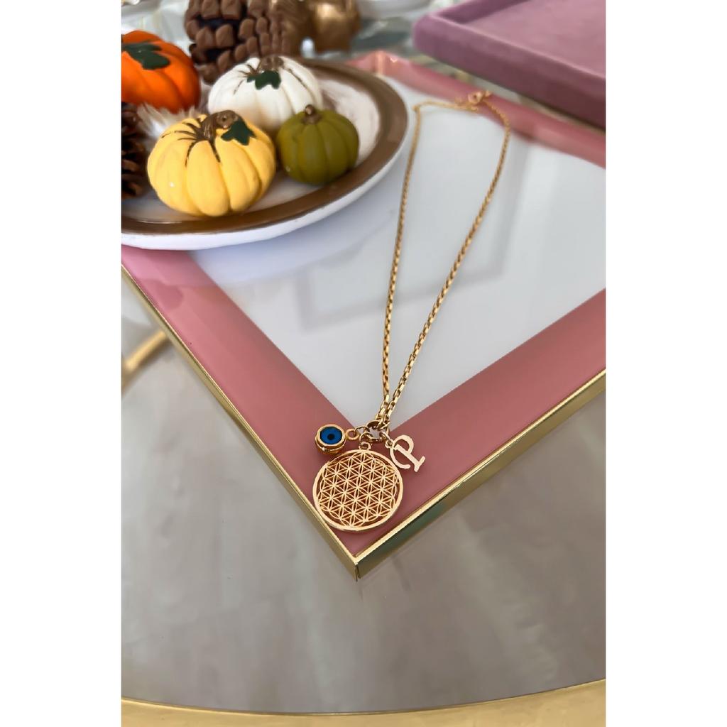 Персонализированное колье «Цветок жизни» с буквой P и подвеской от сглаза