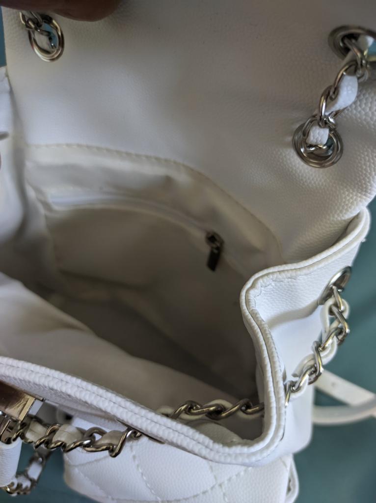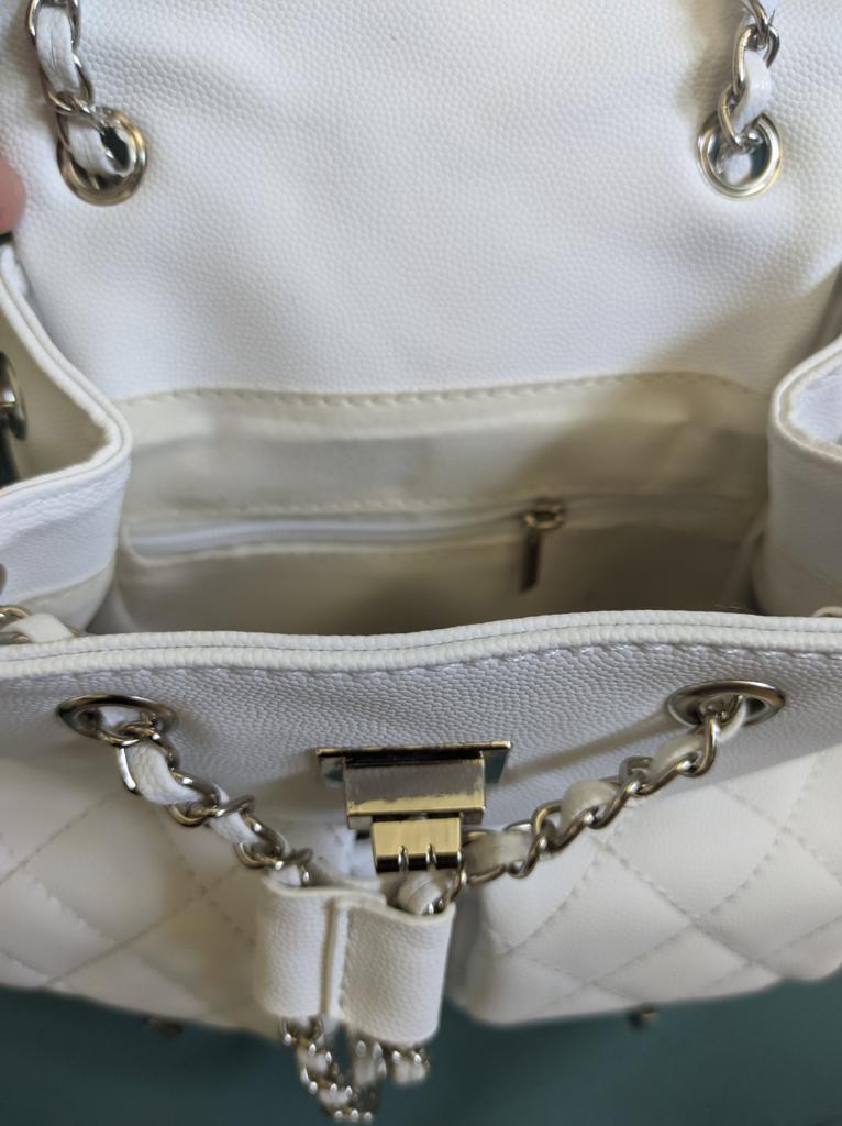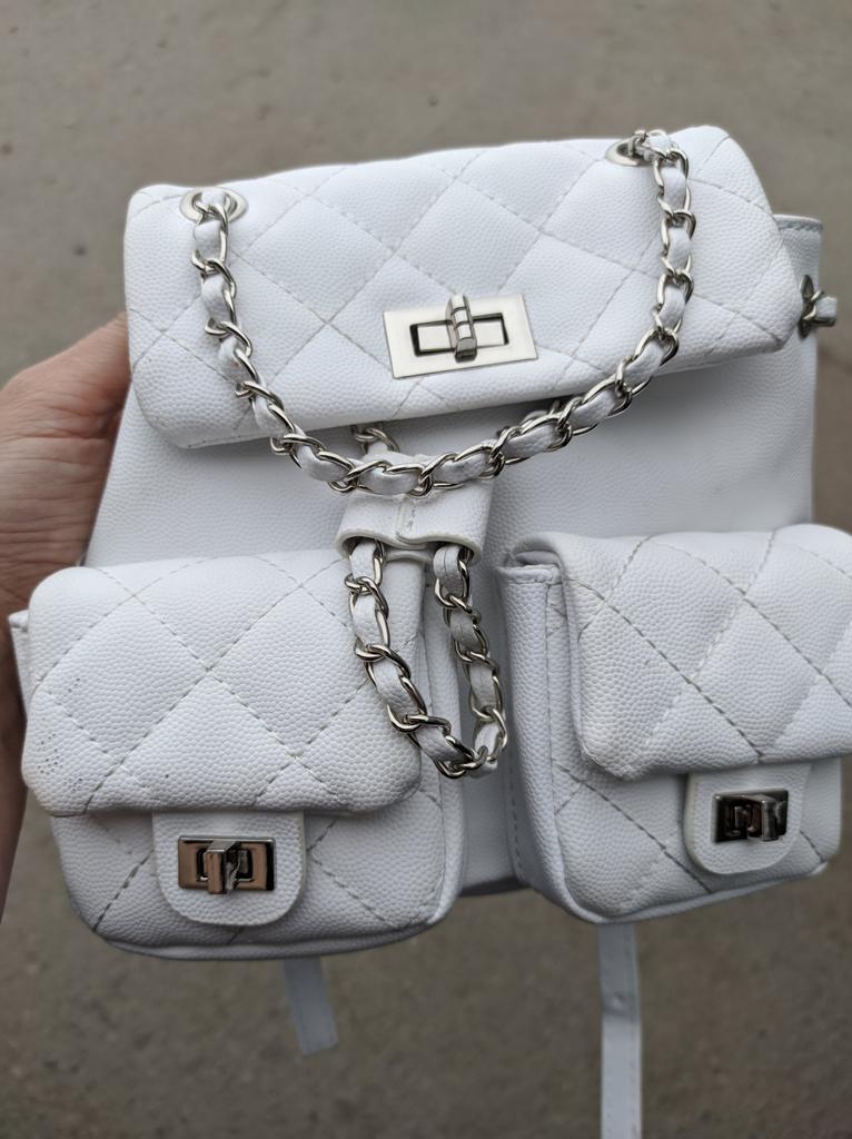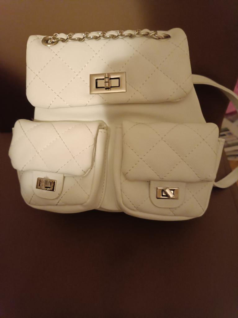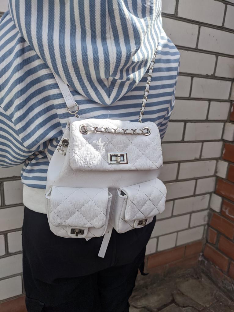 Симпатичный рюкзачок для дочки. Отличный летний вариант для девочки, молодой девушки. 😍 Лёгкий, удобный. С регулирующимися лямочками, с поворотными замочками и двумя накладными кармашками. Материал - кожзам, есть подкладка. Внутри - кармашек на молнии. Дочь выбрала белый. Есть ещё черный и розовый. Дочь довольна! ☺️