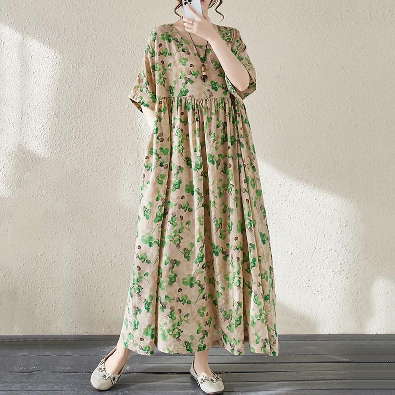 Новые платья из хлопка с короткими рукавами больших размеров и цветочным принтом для женщин, повседневные свободные длинные летние платья — купить товар онлайн с бесплатной доставкой по всему миру!