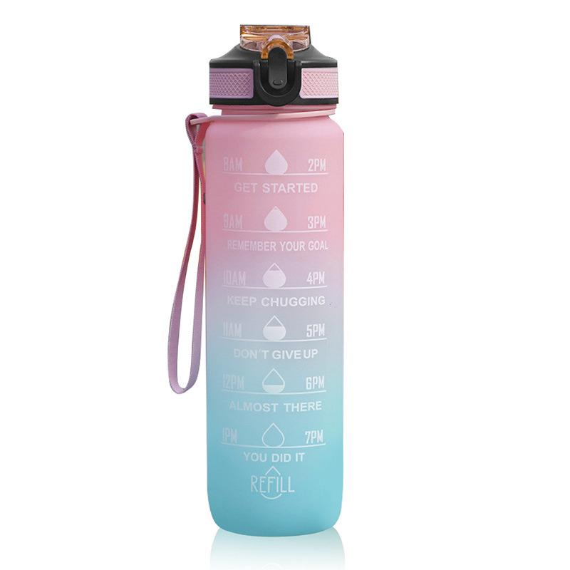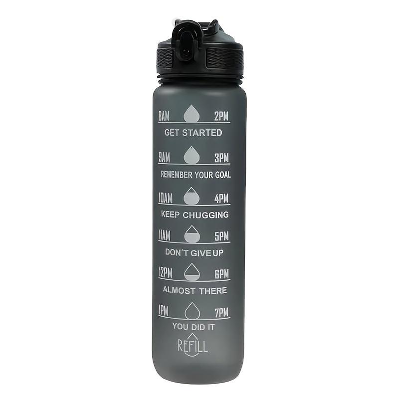 Мотивационная бутылка для воды объемом 1 литр со шкалой времени и соломинкой — идеально подходит для фитнеса, занятий спортом на открытом воздухе и воскресных вечеринок — матовая и герметичная
