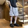 Весенне-летние модные полосатые вафельные шорты в стиле ретро, свободные повседневные спортивные брюки большого размера, прямые шорты с цветными блоками для мужчин