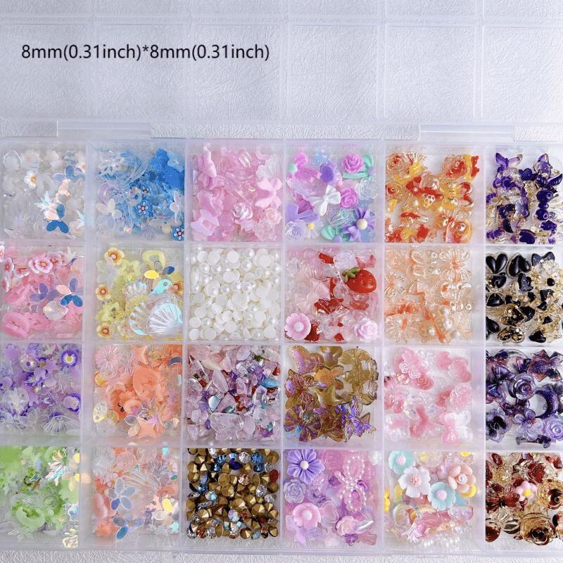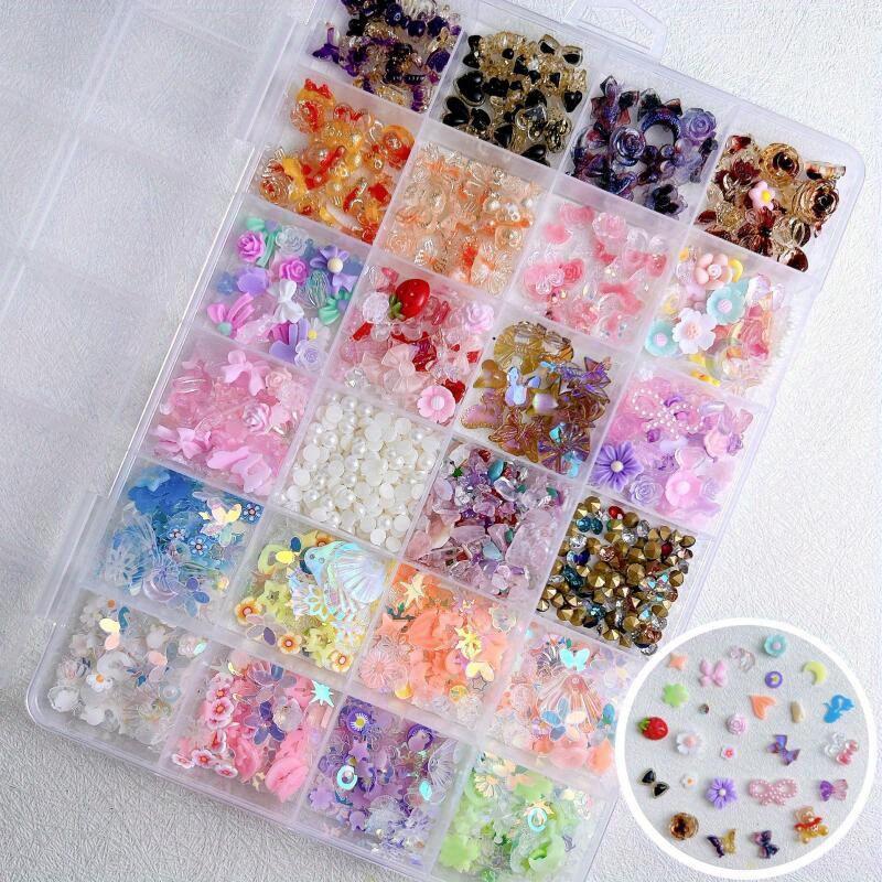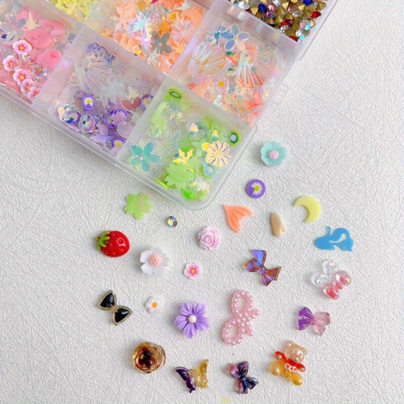 1 коробка набора для украшения ногтей, подвески для дизайна ногтей с бабочкой и цветочным бантом, аксессуары для ногтей с жемчугом