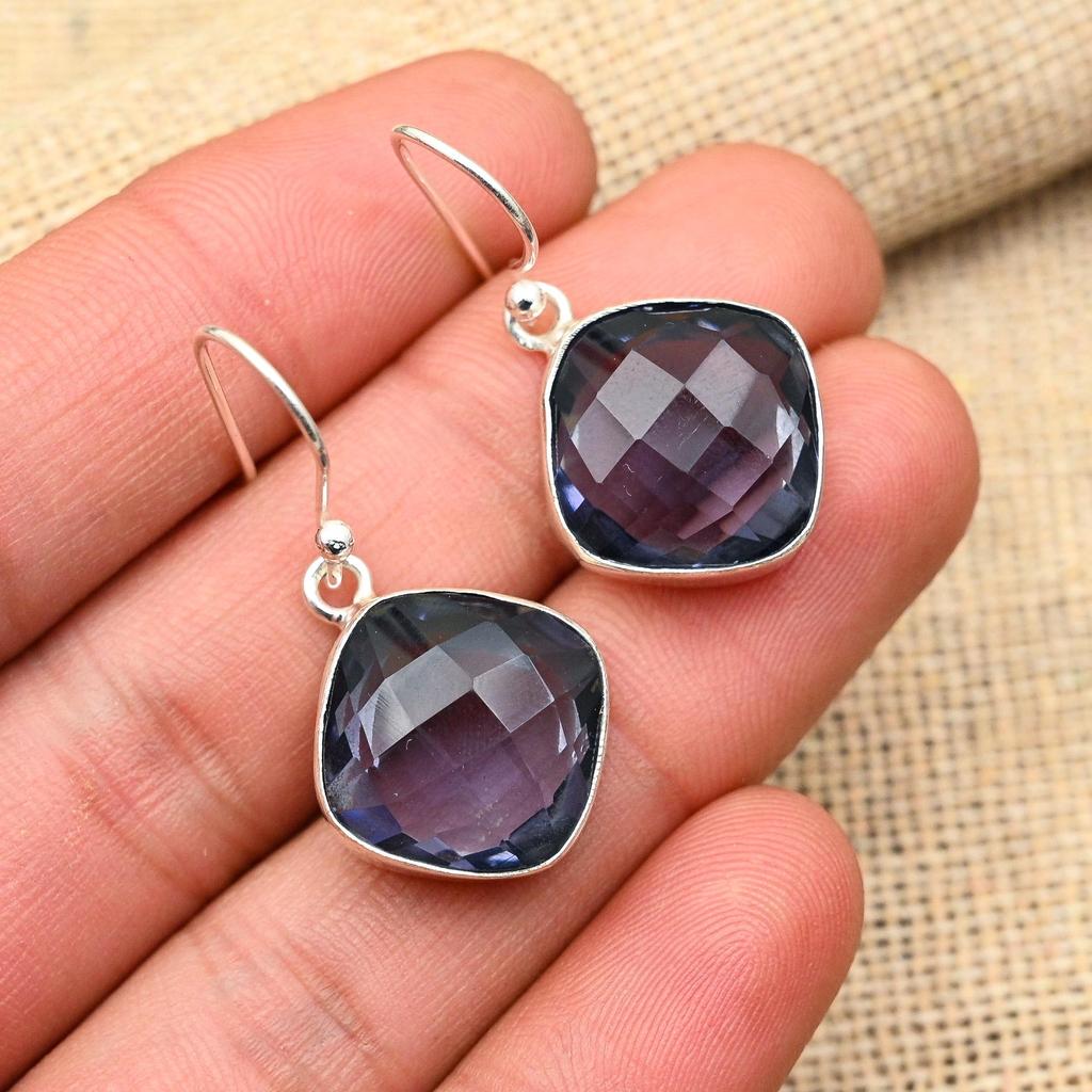 Ювелирные серьги ручной работы из стерлингового серебра 925 пробы с драгоценным камнем иолит для нее — купить товар онлайн с бесплатной доставкой по всему миру!