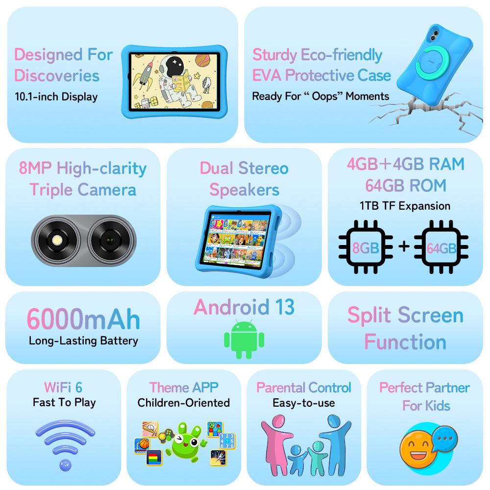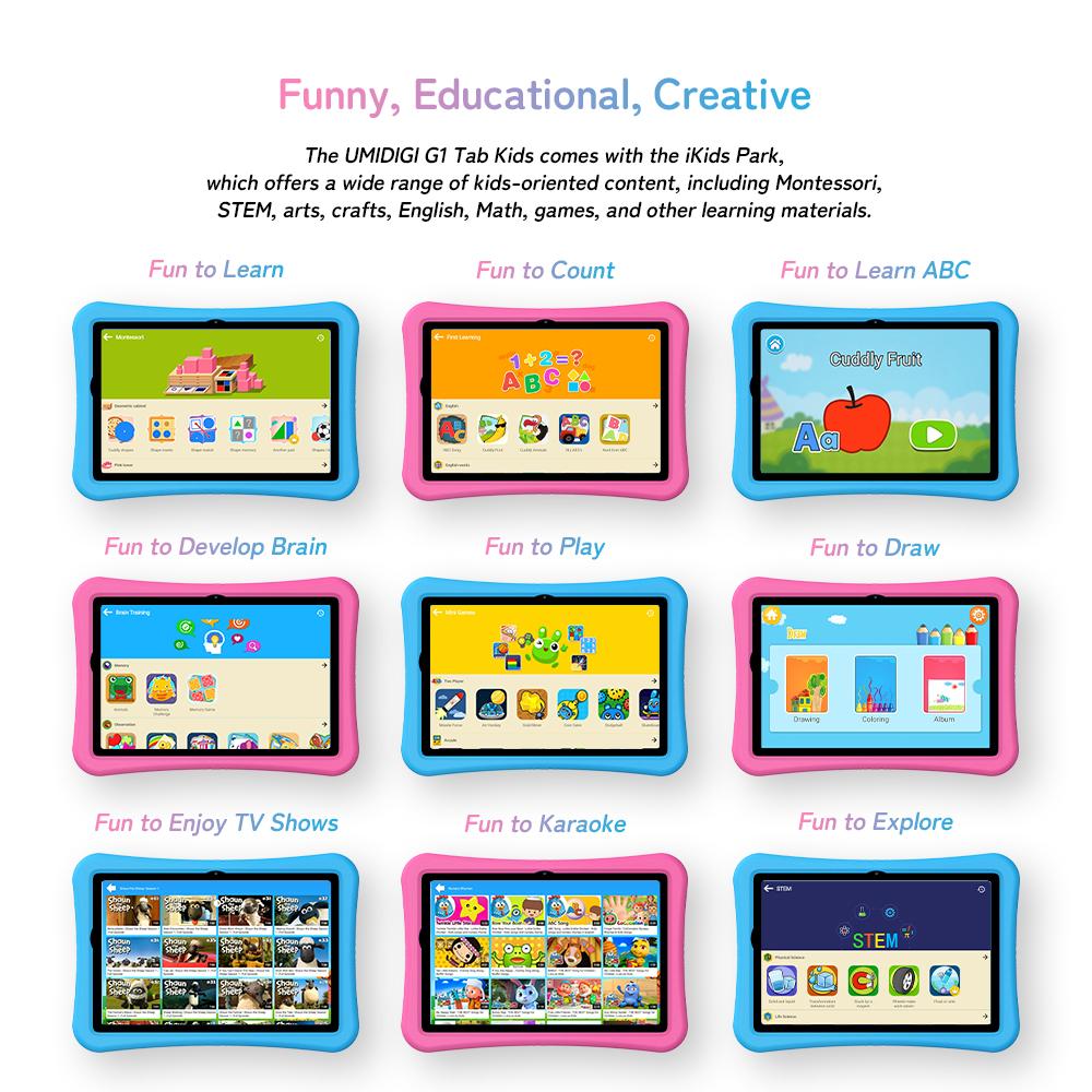UMIDIGI Детский планшет G1 Tab, 10,1 дюйма, детские планшеты, Android 13, четырехъядерный, WIFI 6, 6000 мАч, 4 ГБ 64 ГБ, для обучения