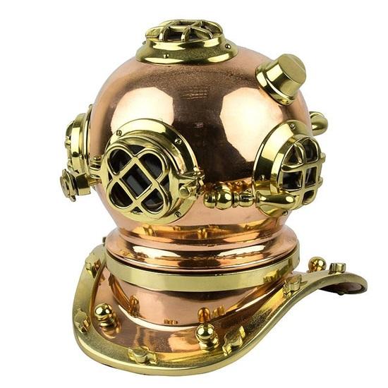 Отлитый из прочных латунных и медных материалов, этот шлем не только излучает вневременную элегантность, но также обещает прочность и долговечность.. Этот шлем обязательно очарует поклонников, независимо от того, украсит ли оно ваше жилое пространство в качестве увлекательного предмета для разговора или добавит морского очарования вашему декору в морской тематике.