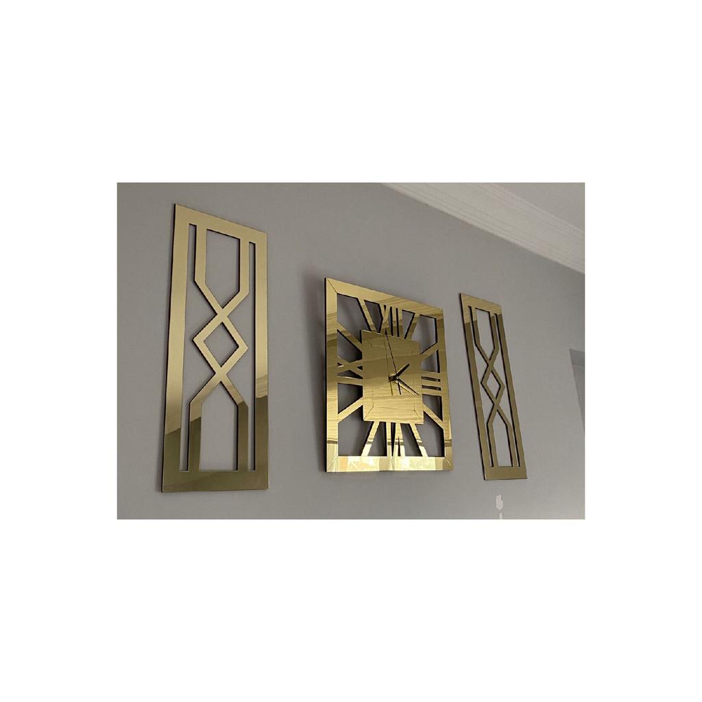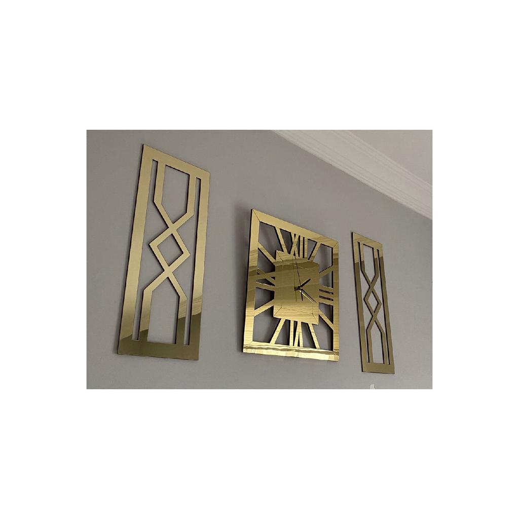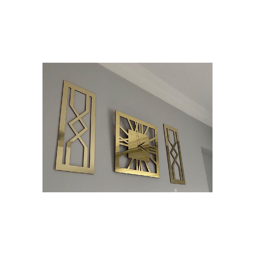 Вы можете легко повесить его на стену благодаря отверстию для подвешивания на задней стороне механизма.. Картины «песочные часы», общая толщина которых достигает 10 мм, были усилены против ударов путем наклеивания золотого зеркального плексигласа на 2 куска МДФ в форме песочных часов размером 30 х 70 см и толщиной 9 мм, общая толщина которых достигла 10 мм.. Сзади имеются двусторонние ленты, позволяющие надежно и легко закрепить их на стене.. Сняв бумагу на двусторонний скотч, вы легко сможете приклеить картины с песочными часами на стену по своему усмотрению.. Общая площадь, занимаемая декоративными квадратными римскими золотыми часами и двумя картинами с золотыми песочными часами на вашей стене, варьируется в зависимости от того, сколько места вы оставляете между ними, но если вы повесите их, не оставляя места, они будут иметь размер 120х70 см.. Посетите нашу страницу магазина Tuba Design, чтобы узнать о других моделях часов и размерах.