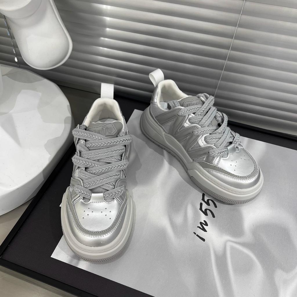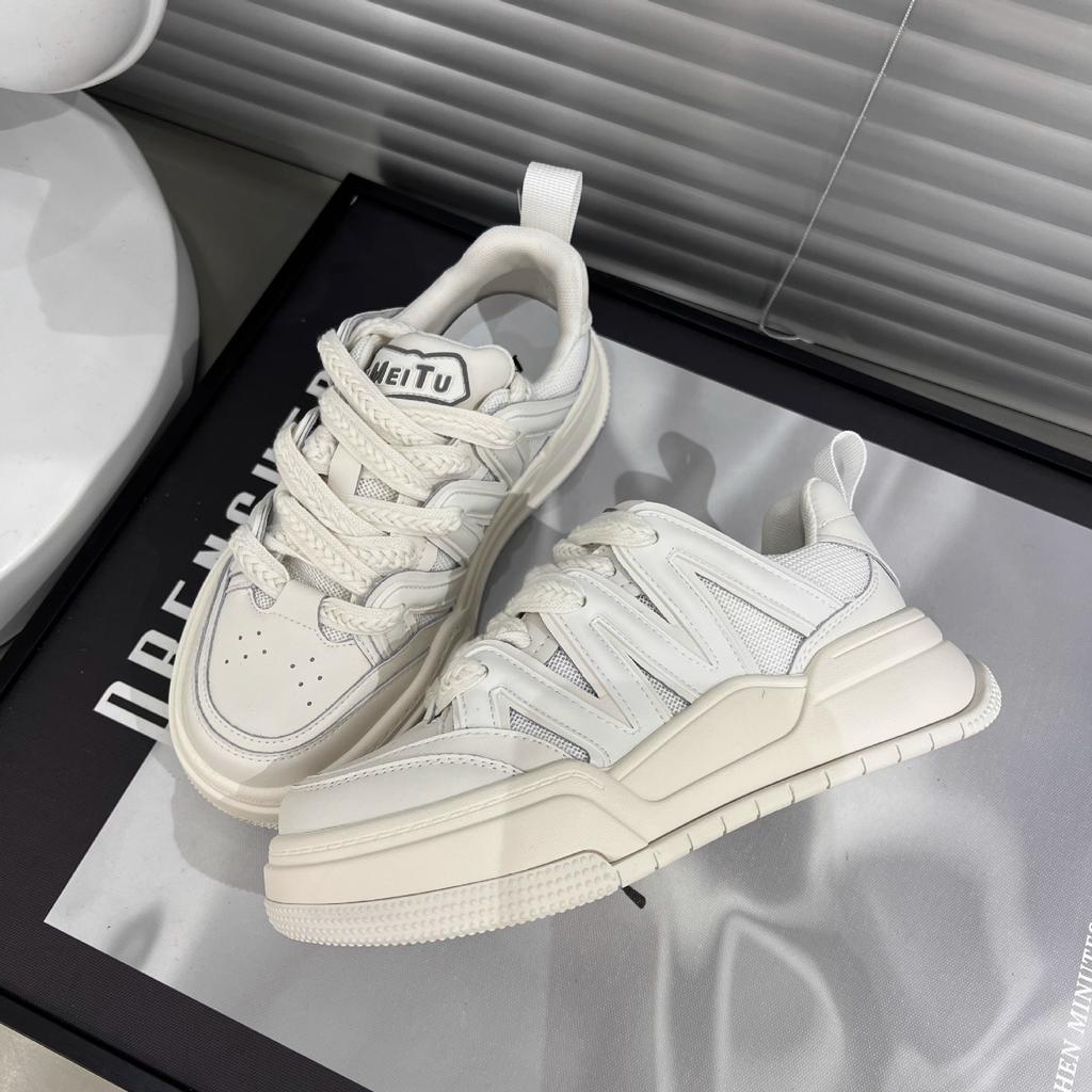 Кроссовки на платформе из натуральной кожи Белые туфли Женские туфли с круглым носком на шнуровке на плоской подошве с цветными блоками Спортивная повседневная обувь Мода