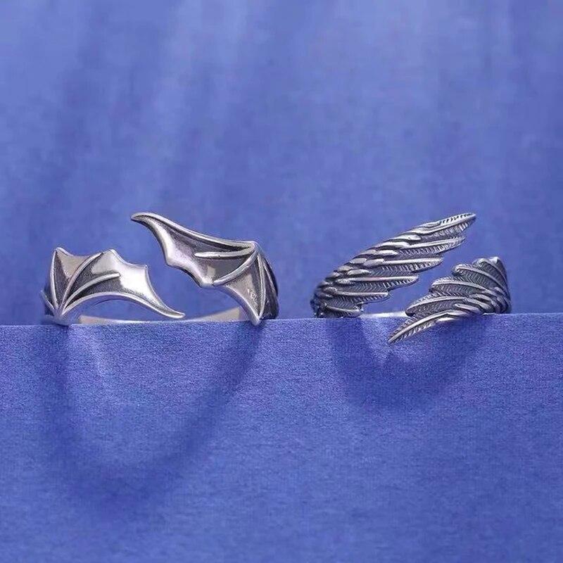 2 шт./компл. Панк Ангел Крыло Демона Парные Кольца для Женщин Ретро Серебристый Цвет Открытое Кольцо С Перьями Свадебные Украшения Подарок на День Святого Валентина