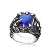 Ретро Коготь Дракона Синий Черный Красный Камень Кольцо Для Мужчин Панк Хип-Хоп Нержавеющая Сталь Кольцо Коготь Дракона Ночной Клуб Вечерние Ювелирные Изделия Подарок