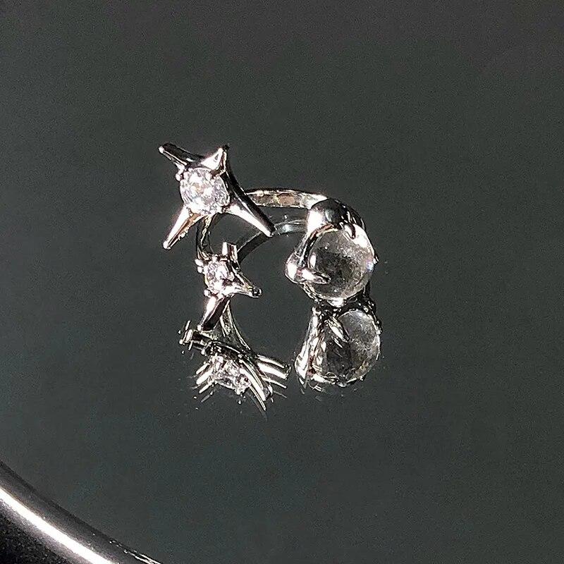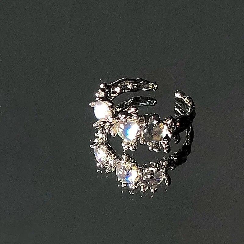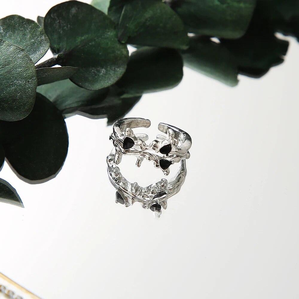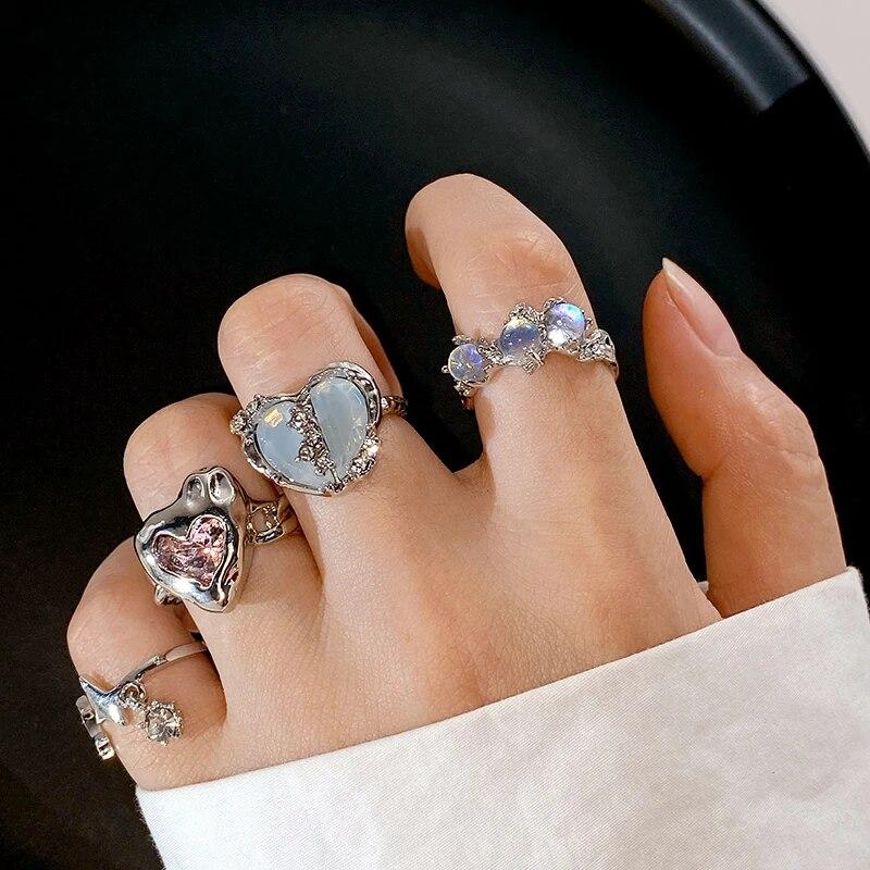 Kpop ретро готическое серебряное металлическое кольцо в форме сердца для женщин и девочек, винтажные открытые кольца с кристаллами Y2k, кольца с геометрической формой в стиле панк, ювелирные изделия для вечеринок