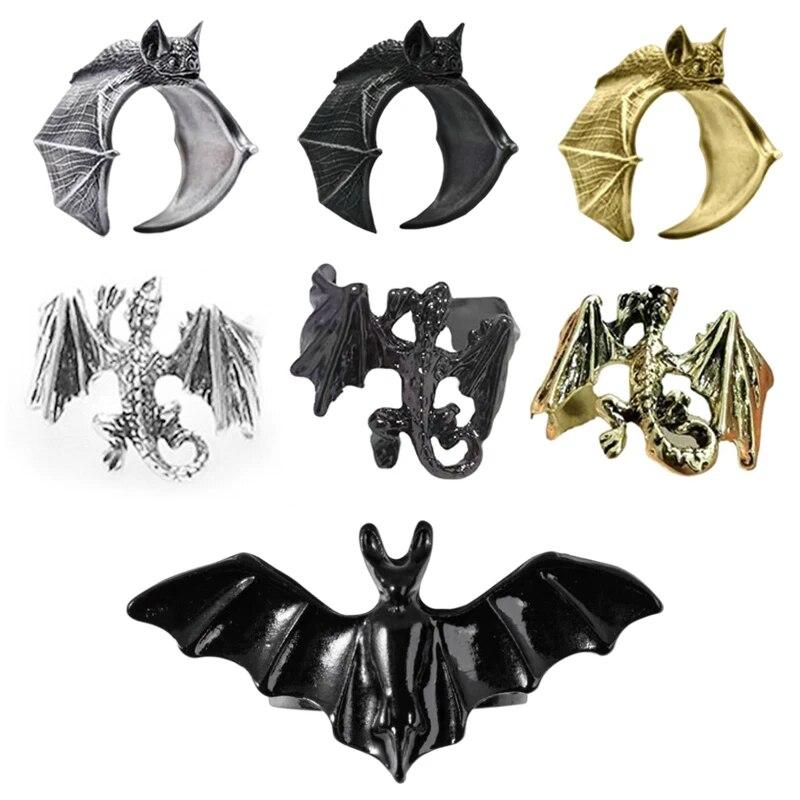Кольца «Летучая мышь» в стиле ретро для мужчин и женщин в стиле панк, готика, регулируемое кольцо на палец, вечерние украшения в стиле хип-хоп, аксессуары для Хэллоуина