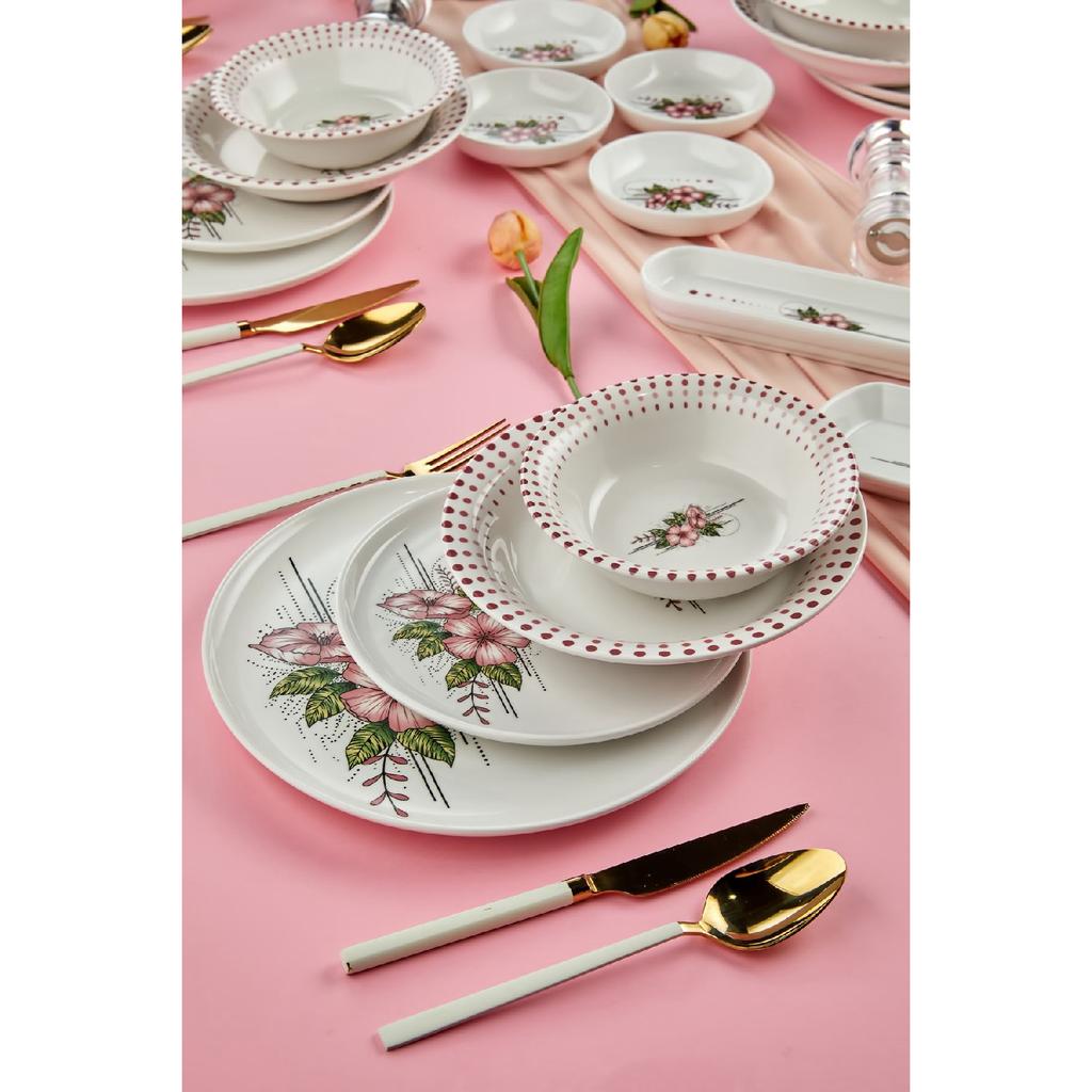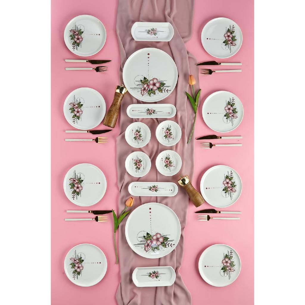 Набор для завтрака Lux Seramik Artless, 18 предметов, розовый на 8 персон